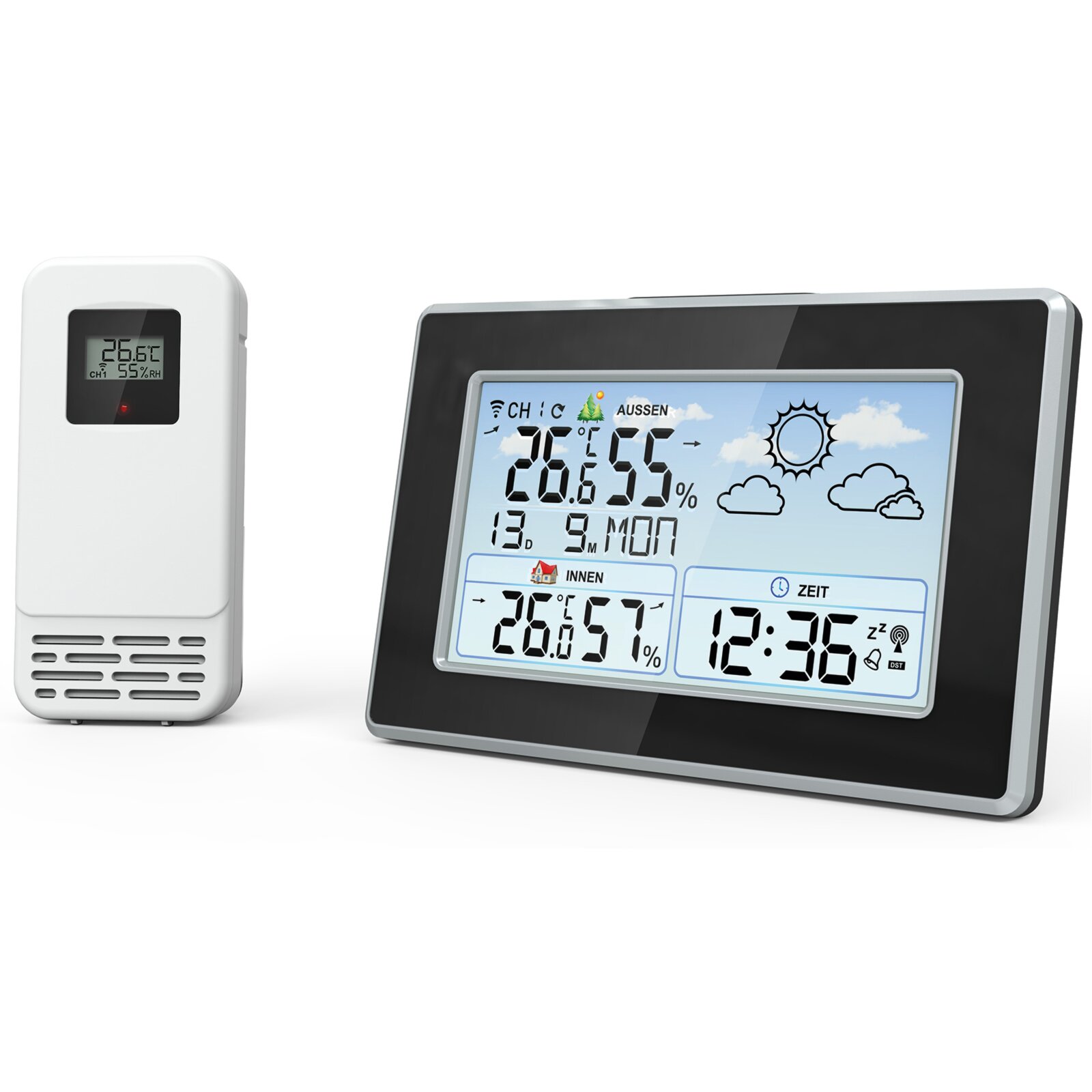 Funk Wetterstation weiß schwarz integrierter Wecker | Online