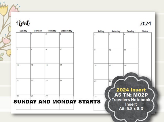 2024 A5 TN Maandelijkse Planner Afdrukbare Insert A5 TN Etsy België